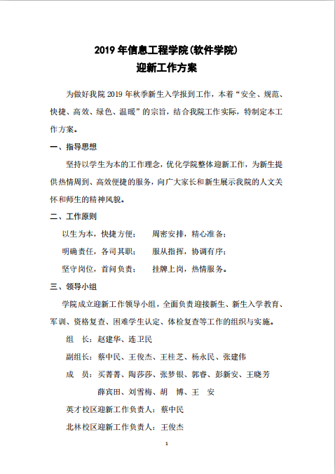 2019年伟德源自英国始于1946(软件学院) 迎新工作方案