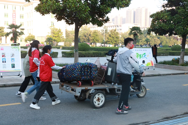 学院高度重视新生入学报到工作,制定2021级新生迎新工作方案,召开迎新工作会议,全面制定迎新工作流程以及任务分配,做好详细周密的工作部署。迎新当日,我院党委书记杨行昌、院长连卫民、党委副书记蔡中民、团委书记郭睿亲临迎新活动现场,指导迎新工作。我院辅导员老师为新生送去上百只爱心编织袋,并全程守在迎新现场,为新生返校复学保驾护航。学生会成员及各班志愿者也全身心的投入到迎新工作。志愿者手举院牌,引导新生办理入学手续,并为其搬运货物行李。迎新志愿者们冲锋在前,无言苦累,以确保新生返校工作顺利完成。