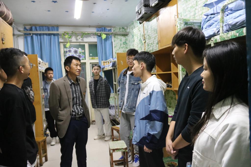 为了进一步了解同学们的宿舍生活情况并能让同学们尽快适应新的环境,我院党委书记杨行昌、院长连卫民、党委副书记蔡中民、副院长王桂芝、副院长张建伟、副院长李井竹、团委书记郭睿以及各班辅导员于10月13日晚上深入新生宿舍走访慰问。