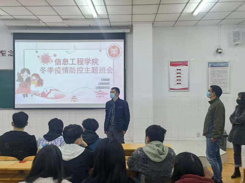 我院党委书记杨行昌、党委副书记蔡中民以及团委书记郭睿深入各班班会现场。鉴于当前疫情形势的严峻性和疫情防控的重要性,杨书记强调:第一,通过官方渠道了解真实准确的疫情动态,提醒学生不要前往疫情风险区。如有去过风险地区的学生要第一时间上报活动轨迹,按时、准确地摸排信息。第二,保证良好的心态、消除过度焦虑恐慌、积极抗击疫情,关注官方渠道发布的消息,不信谣、不传谣、不造谣,做好自我防护。第三,养成良好的生活习惯、注意个人卫生、宿舍卫生、减少聚集性活动。第四,要遵守学校疫情期间进出校门的管控和请销假手续。同时,杨书记也非常关心同学们未来的发展,鼓励大家积极考研,规划好方向,积极将正能量的学习经验、生活经验传递给学弟学妹。