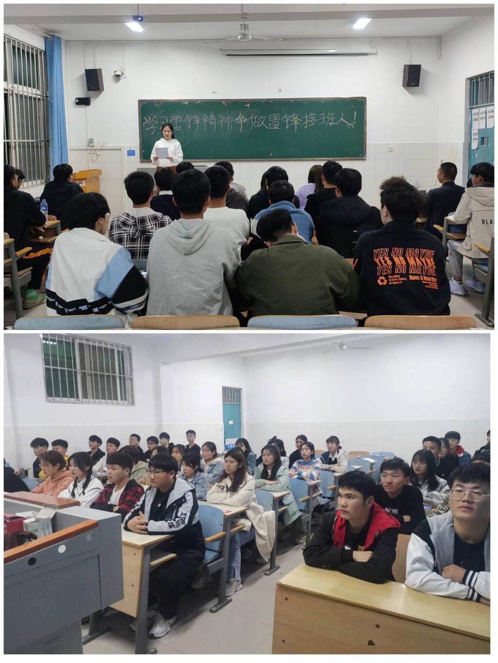 各班班会顺利进行。班委首先强调了此次班会召开的重要意义:学习雷锋精神,传播志愿服务的理念,有利于帮助同学们树立正确的世界观、人生观、价值观。接着由学生代表上台演讲,在演讲中为同学们讲述了雷锋故事并从多方面解读了雷锋精神,带领同学们深刻体会雷锋精神对于构建和谐社会的价值及意义,从而更好地弘扬雷锋精神,争做雷锋接班人。同学们在此过程中也积极认真地思考并踊跃回答相关问题