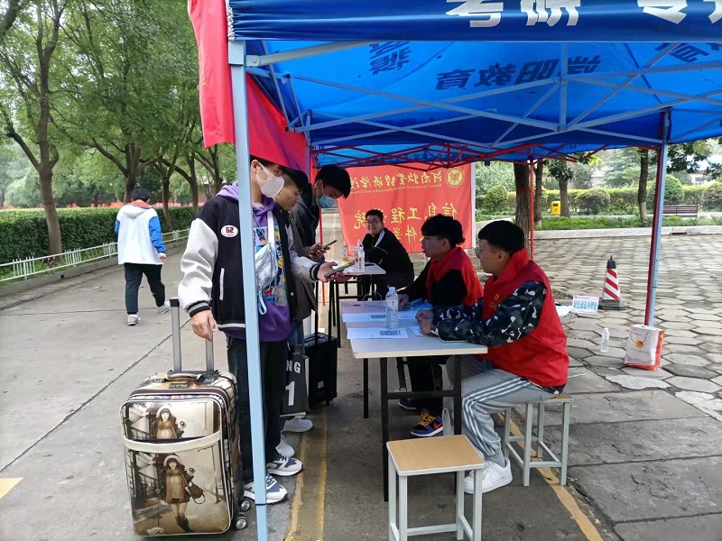 学院党委书记杨行昌、院长连卫民、党委副书记蔡中民、副院长李井竹一早就来到了接待现场,对学生返校疫情防控工作做了全面部署。学生入校前按照学校规定扫码验证身份,并出示验健康码、行程卡、入校前48小时内核酸检测阴性报告方可进校;入校后,院系引导学生到报到处通过今日校园扫描二维码定位签到,并递交“三单一书”,极大提高了学生们填写相关信息的效率,简化了报道流程,减少了人员之间的接触。期间,杨书记带领学生工作队伍深入宿舍,了解学生住宿环境,并与已返校学生进行了深入交流,详细询问了他们的生活状况和作息制度并了解了大家的思想动态,对学生宿舍环境卫生、宿舍文化建设进行现场指导,并要求同学们在日常生活中务必注意财物安全、用水用电安全、人身安全,加强内务清洁管理,保持宿舍环境卫生。