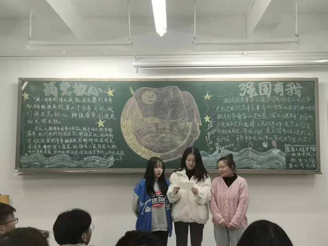 10月21日晚19:20—20:20,我院组织各班在教学楼固定教室开展以“请党放心 强国有我”为主题的团课活动。本次活动旨在教育引导广大团员厚植爱党、爱国、爱社会主义的情感,树立远大理想,增强奋斗精神,活动开始前,各班团支书以及组织委员带领同学们到教室进行绘画板报等准备活动,下午两点半开始由团支书举行团课活动,同学们积极参与本次团课,展现自己向上青春的一面。并由校团委、院会宣传部组织部行考察指错纠正。