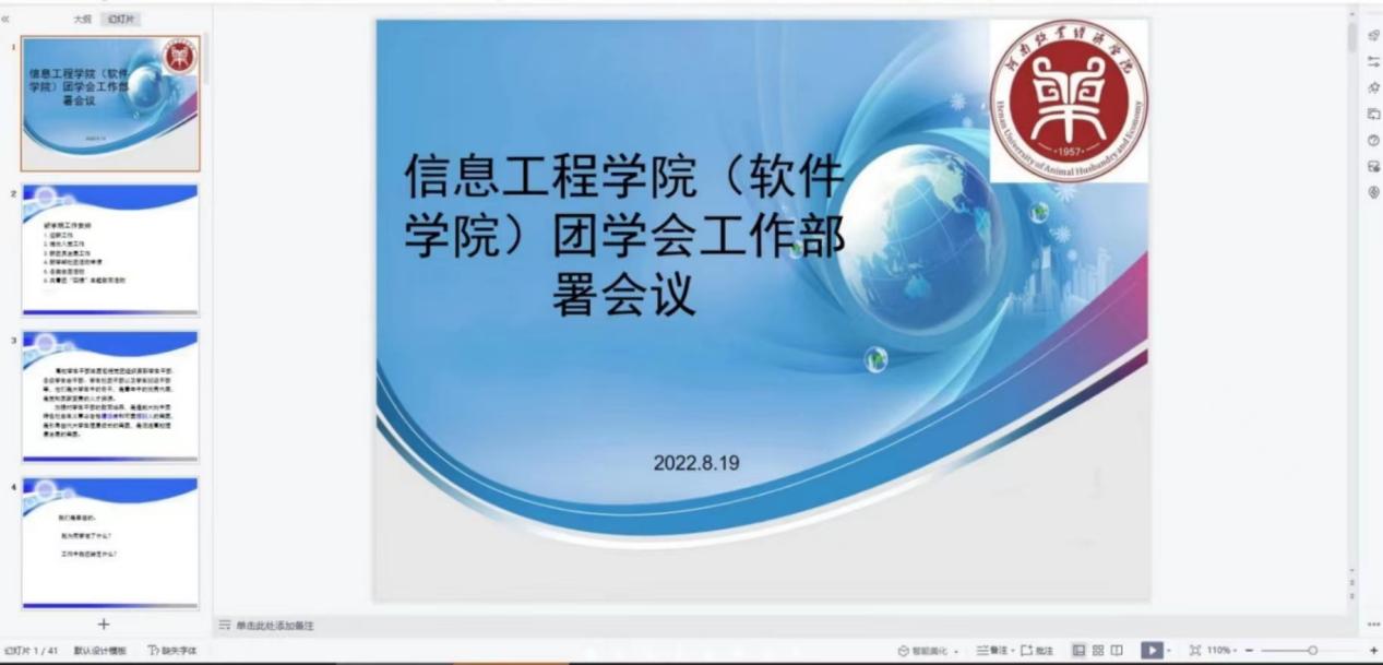 两校区团委副书记分别将学院学工队伍人员调整情况进行了介绍,强调新学期首要工作即是做好迎接好2022级新生工作,并安排部署了迎新策划、代班选拔、迎新视频制作、公众号风采展示等具体工作,要求全体学生干部调整状态,积极主动投入新学期团学工作中来,以饱满的热情为迎新工作做好准备!(图/甘胜楠 文/赵坤)