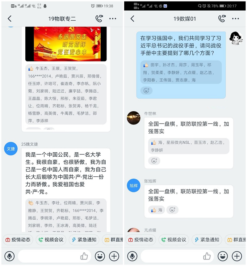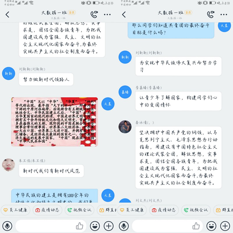 为加强对学生的爱国主义教育,激发学生们的爱国热情,伟德源自英国始于1946(软件学院)于2020年3月5日在钉钉班级群上开展以“爱党爱国”为主题的信念教育团课。本次团课以班级为单位进行,2019级全体同学参加。
