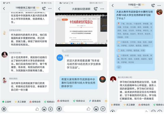 为引导广大学生积极学习优秀青年志愿者的先进事迹,培养学生胸怀祖国、服务人民的家国情怀和冲锋在前、甘于奉献的时代担当,我院组织全体学生在QQ和钉钉班级群上开展了学习焦作市武陟县中水寨村马明杰等10名大学生优秀群体事迹的主题教育。