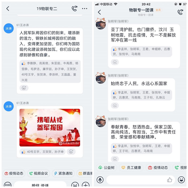 同学们一个个精神饱满,用洪亮的声音同唱《平凡天使》这首歌,每个人从心里发出的声音传播出一股力量,每一句词都表达了他们对白衣战士们不畏生死,较量病魔精神的敬畏,每一句词都表达了他们对志愿者们维系安定,无私奉献精神的尊重,他们通过合唱共同致敬那些在疫情面前不求回报、不为赞颂,只想在此刻难关里出一点力,送上自己一份心意的平凡天使们,向那些平凡而有力量的英雄人物、对身边撑起一片天地的钢铁的脊梁,表达了他们真挚的爱和感恩。有学生表示,从家国情怀到冲锋英雄,从民族力量到人性光辉,这些光芒应该定格于我们的记忆,应该被下一代传承。