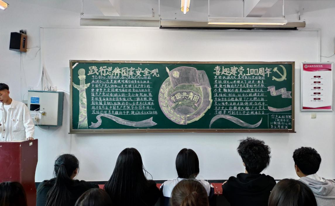 2021年4月8日下午二点半至三点半,我院组织20级各班在团课教室中开展团课学习活动。本周团课以“践行总体国家安全观,喜迎建党100周年”为主题,旨在引导广大青年学生牢固树立自觉关心和维护国家安全意识,使同学们及时了解全民国家安全教育日的由来、含义、主要内容、当前国家安全形势等相关知识。